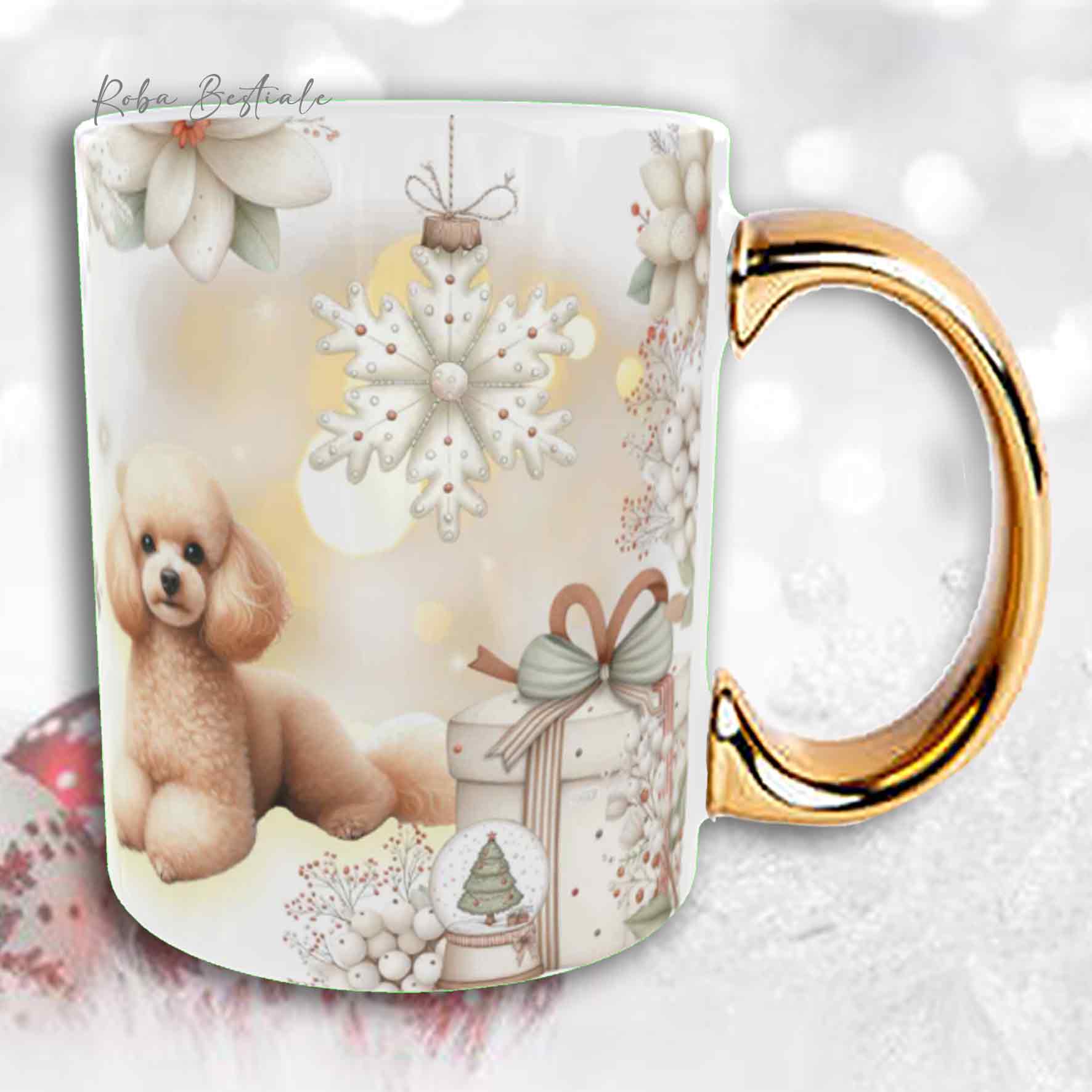Tazza COZY WINTER - BARBONE Toy Fulvo - In Ceramica, con manico color Oro - 330 ml