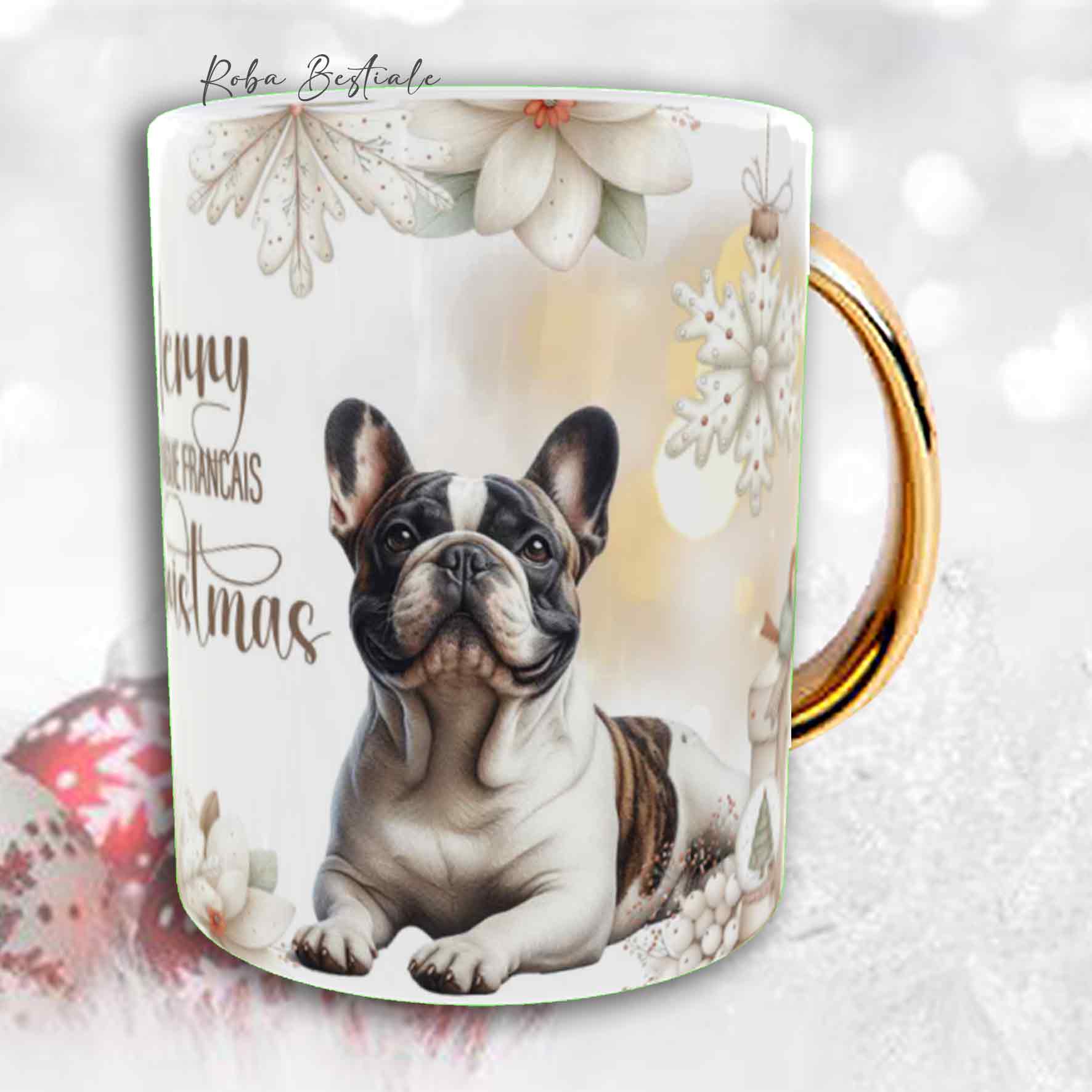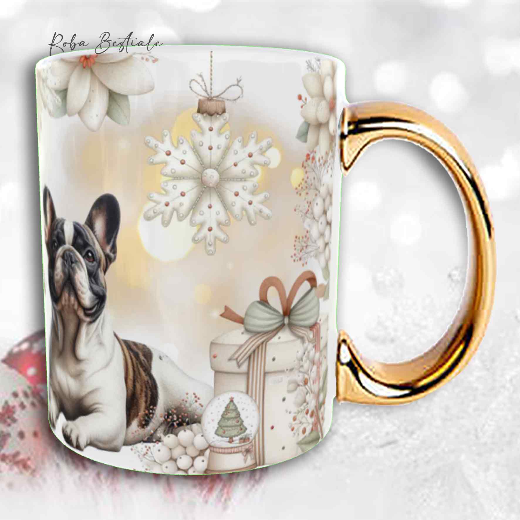 Tazza COZY WINTER - BOULEDOGUE FRANCAIS Caille - In Ceramica, con manico color Oro - 330 ml