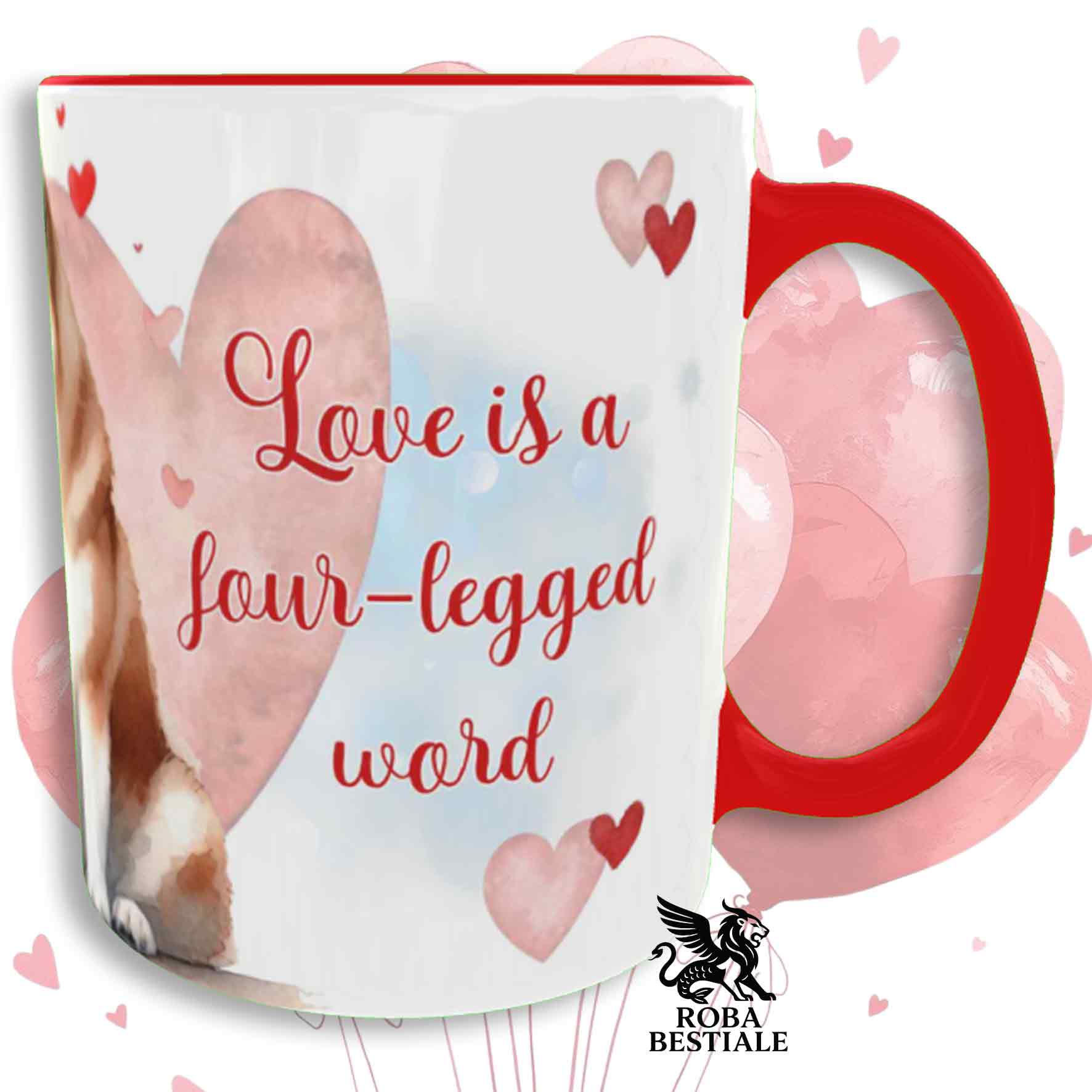 Tazza LOVE ME - AKITA AMERICANO Bianco Fulvo - In Ceramica, con dettagli Rossi - 330 ml