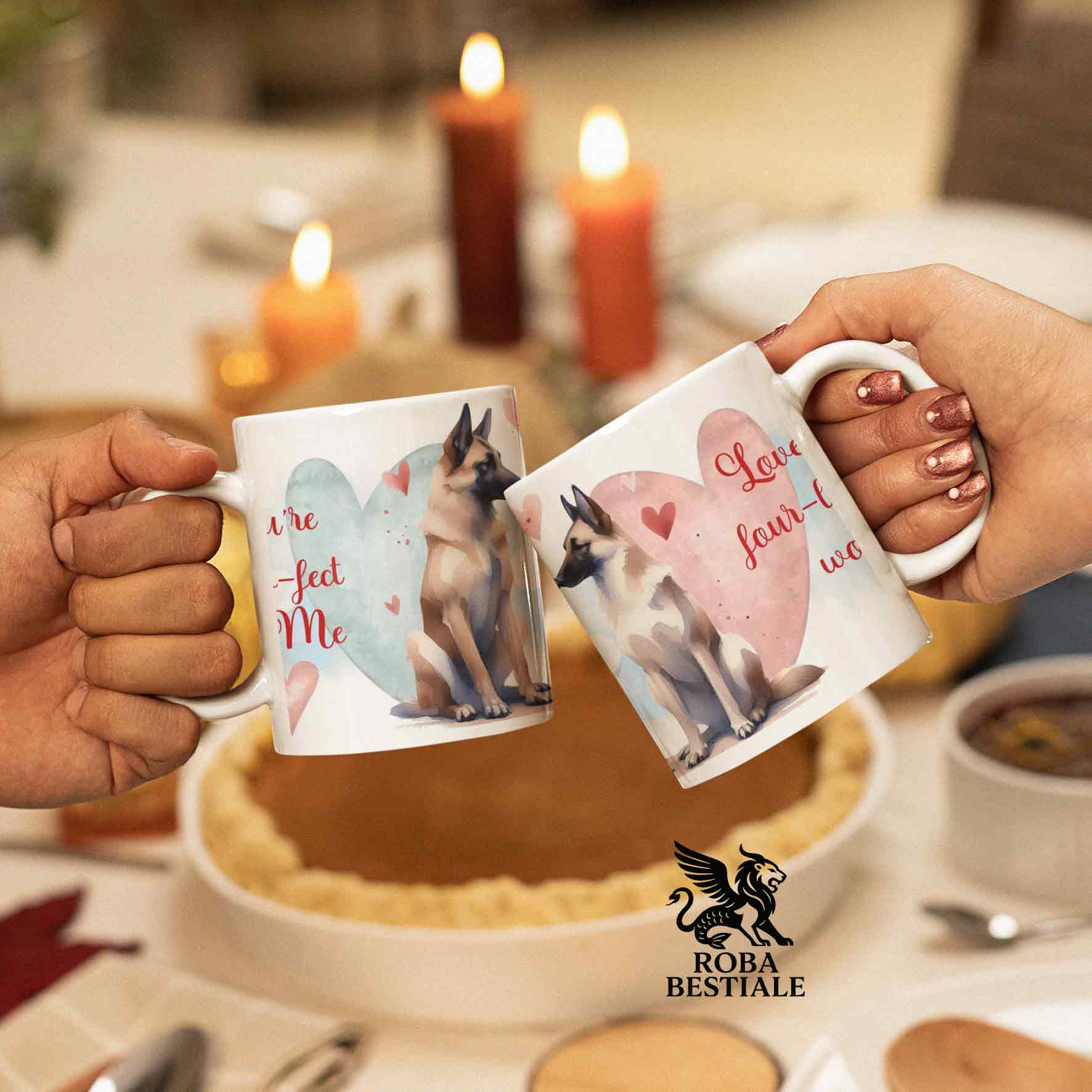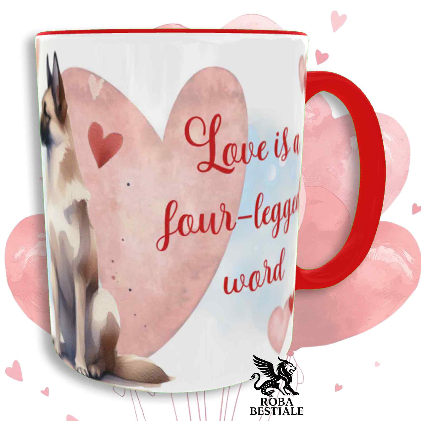 Tazza LOVE ME - PASTORE BELGA MALINOIS - In Ceramica, con dettagli Rossi - 330 ml