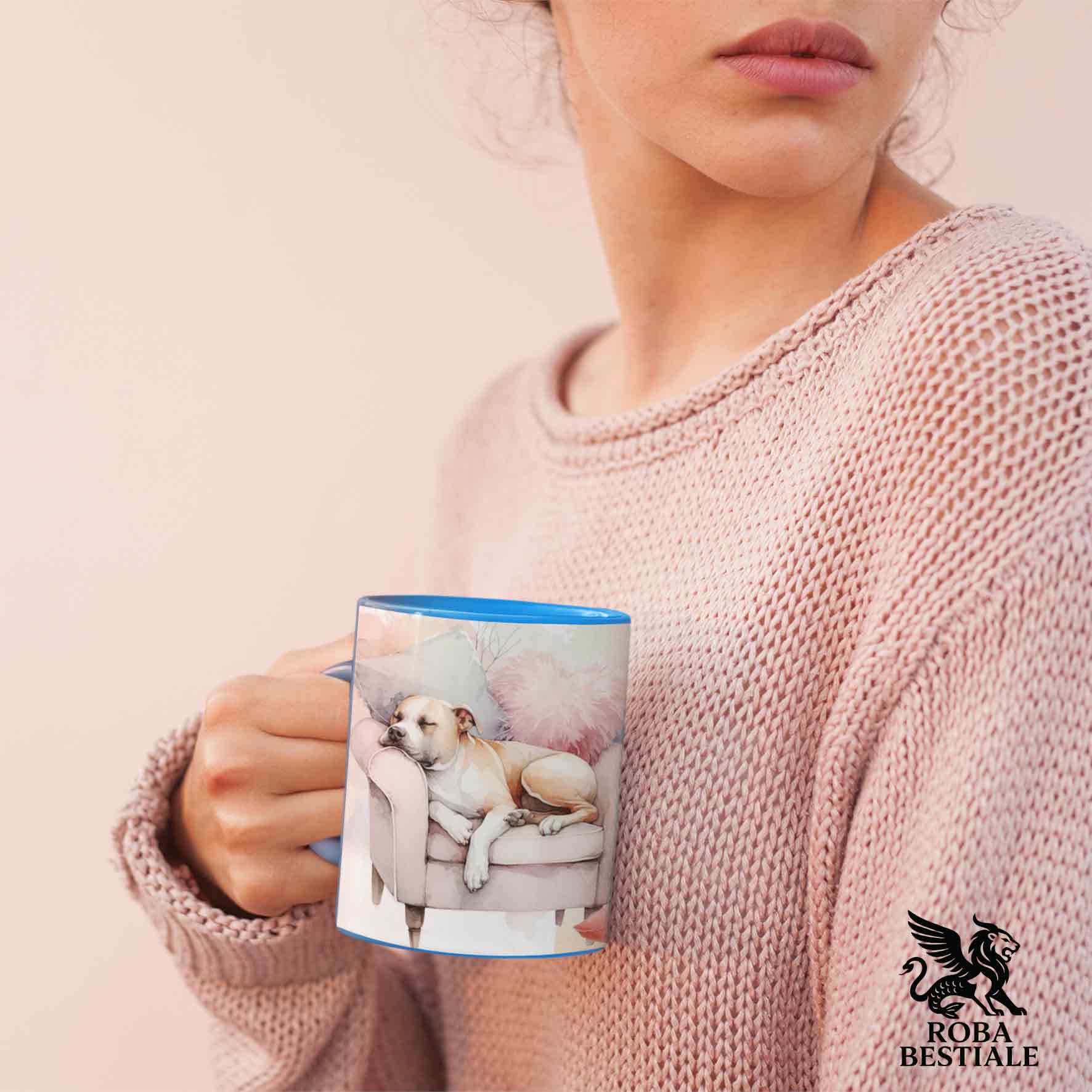 Tazza SOFT LIFE - AMERICAN STAFFODSHIRE TERRIER Bianco Fulvo - In Ceramica, colore a scelta - 330 ml