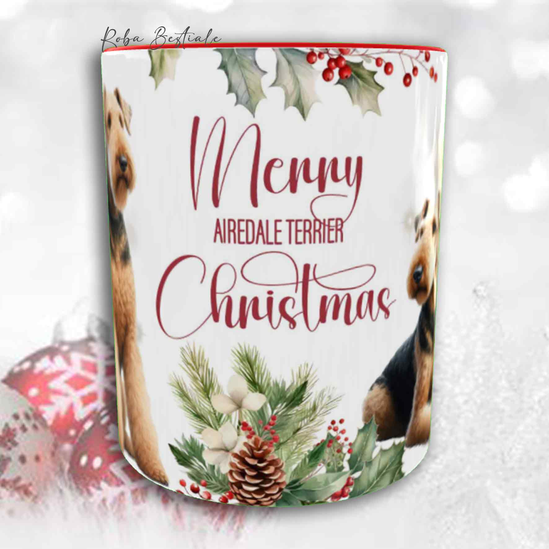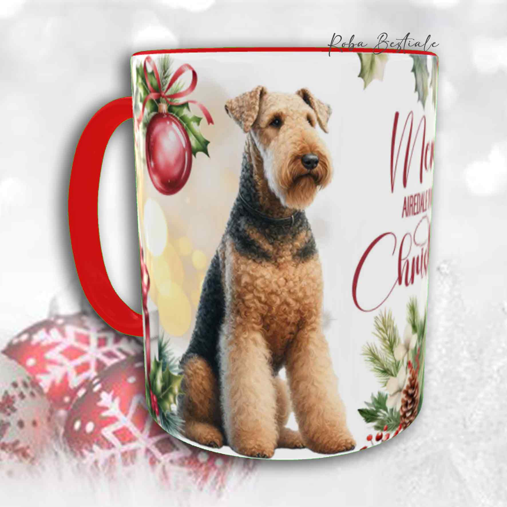 Tazza VINTAGE WINTER - AIREDALE TERRIER - In Ceramica, con dettagli ROSSI - 330 ml