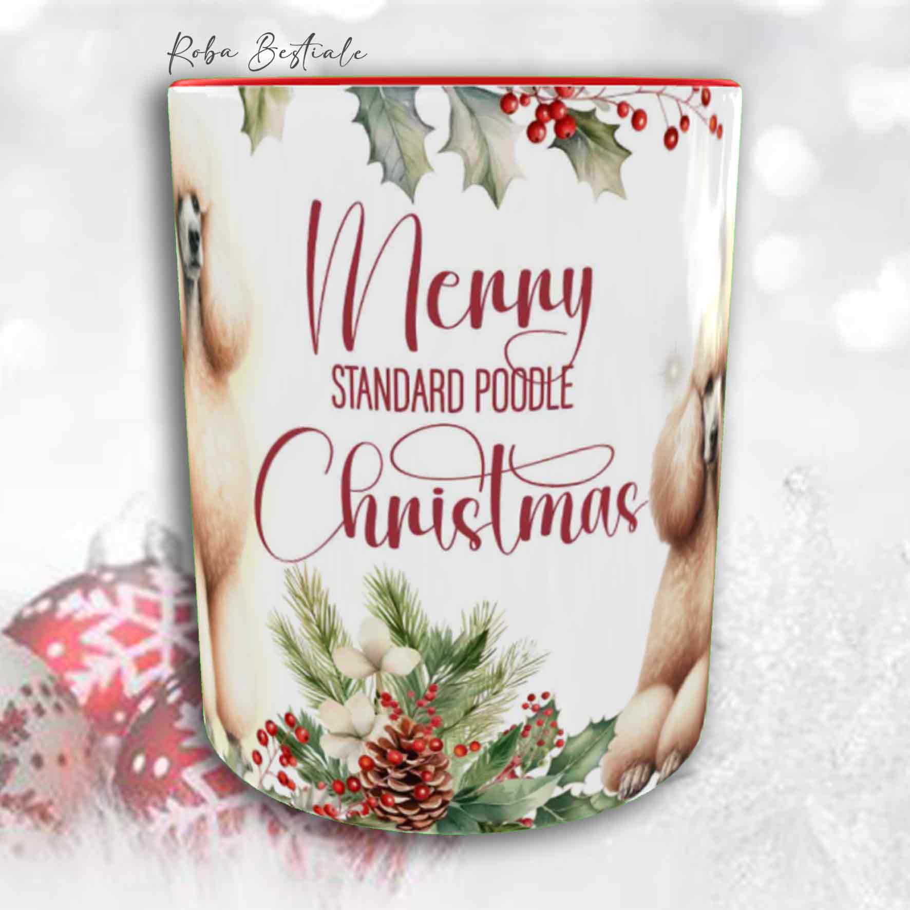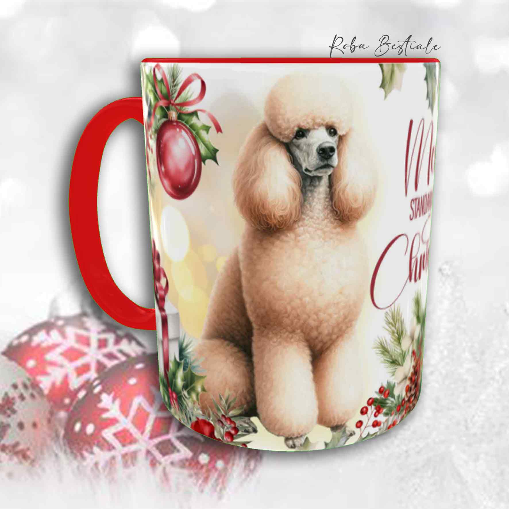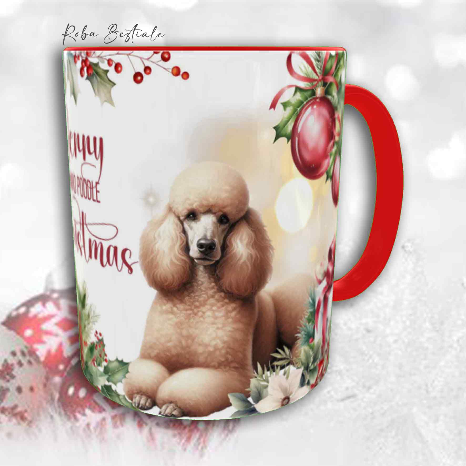 Tazza VINTAGE WINTER - BARBONE Grande Mole Fulvo - In Ceramica, con dettagli Rossi - 330 ml