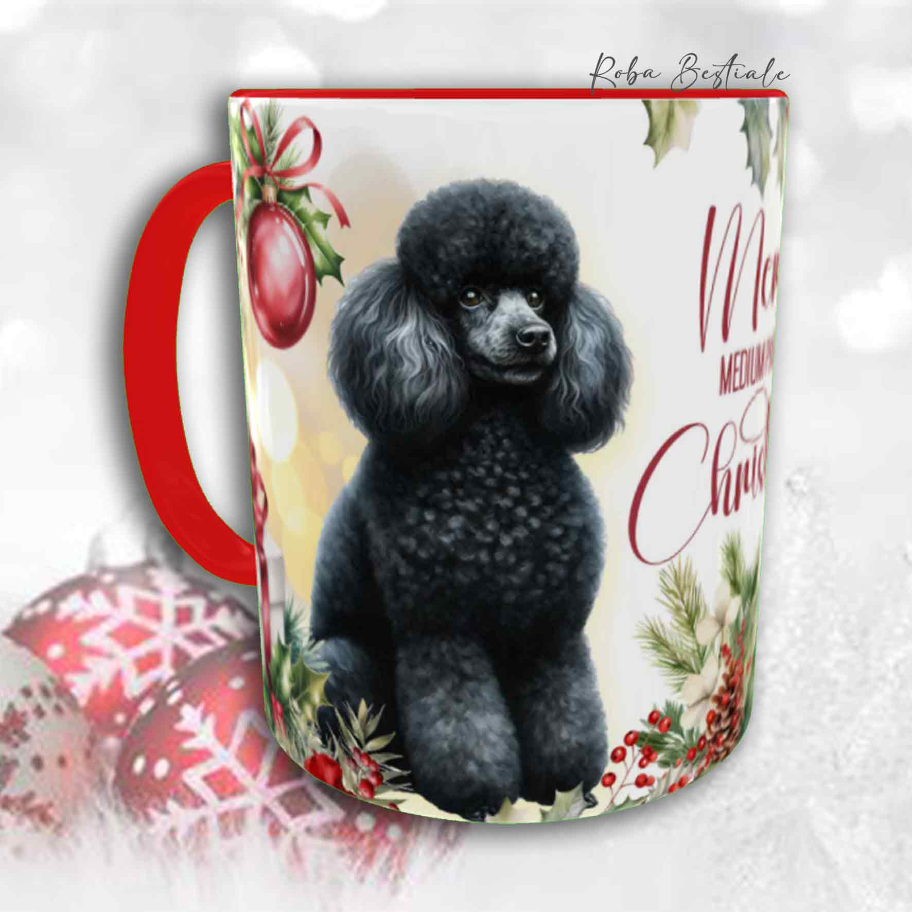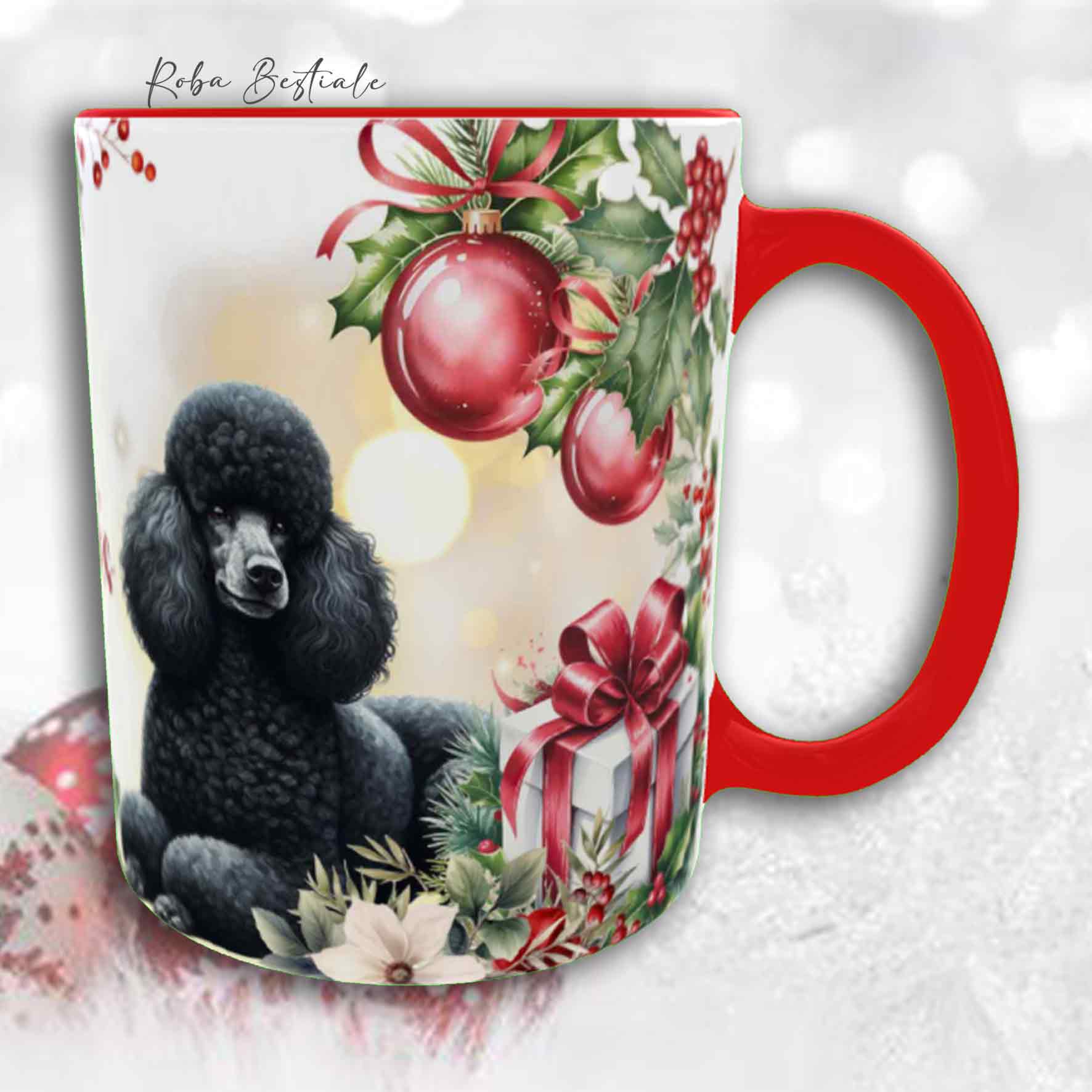 Tazza VINTAGE WINTER - BARBONE Media Mole Nero - In Ceramica, con dettagli Rossi - 330 ml