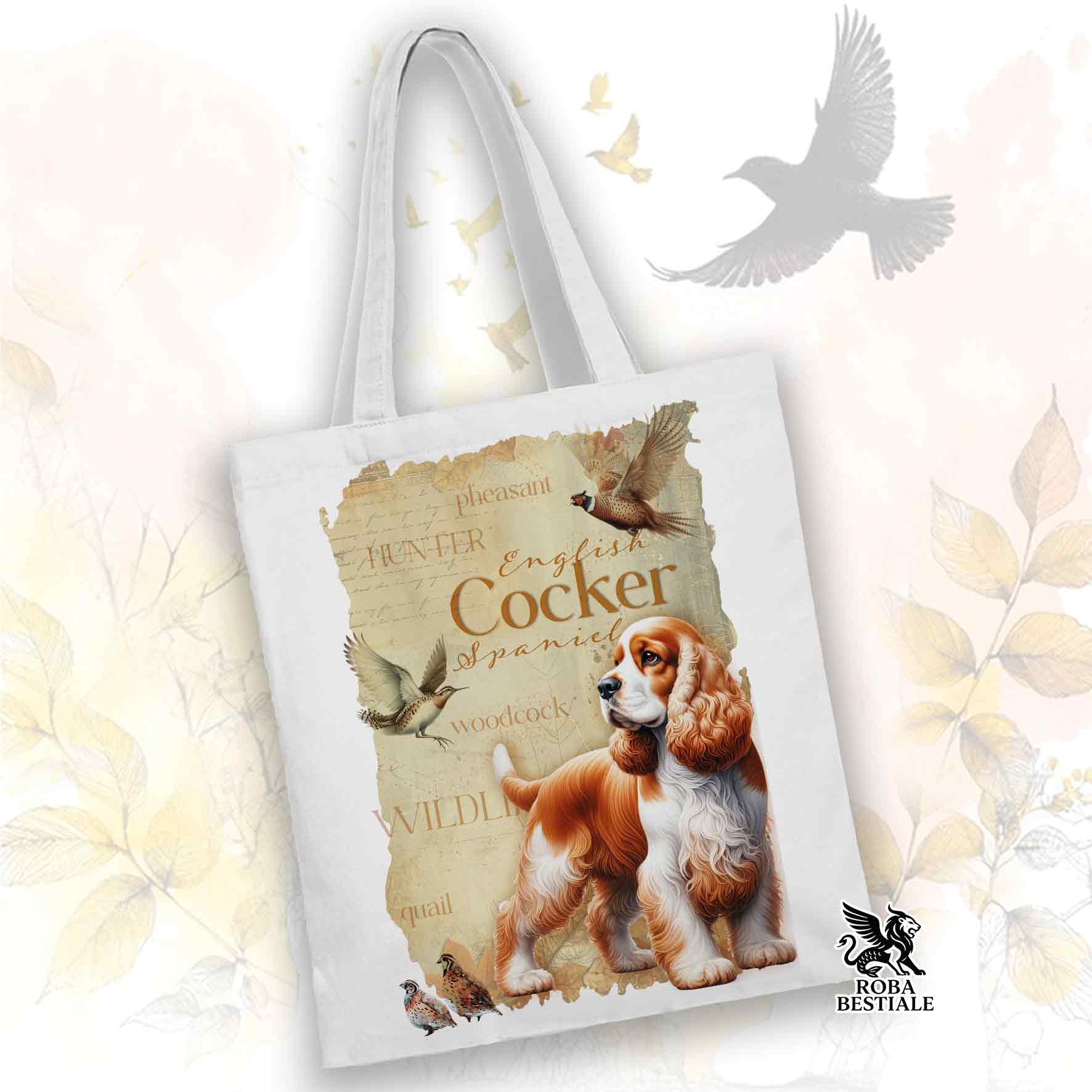 Tote Bag FIELD LEGACY - COCKER SPANIEL INGLESE Bianco e Arancio - 100% Cotone - Bianca o Beige