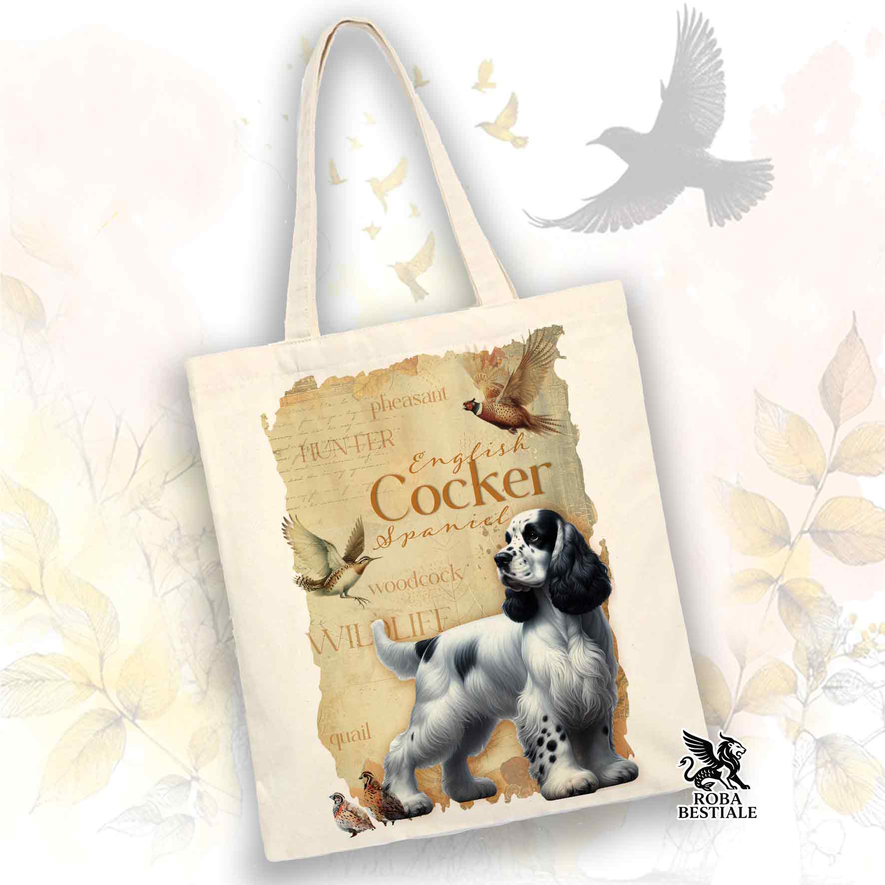 Tote Bag FIELD LEGACY - COCKER SPANIEL INGLESE Bianco e Nero - 100% Cotone - Bianca o Beige