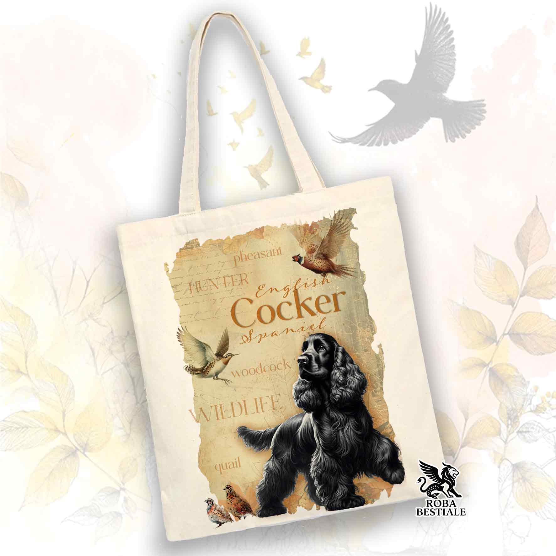 Tote Bag FIELD LEGACY - COCKER SPANIEL INGLESE Nero - 100% Cotone - Bianca o Beige