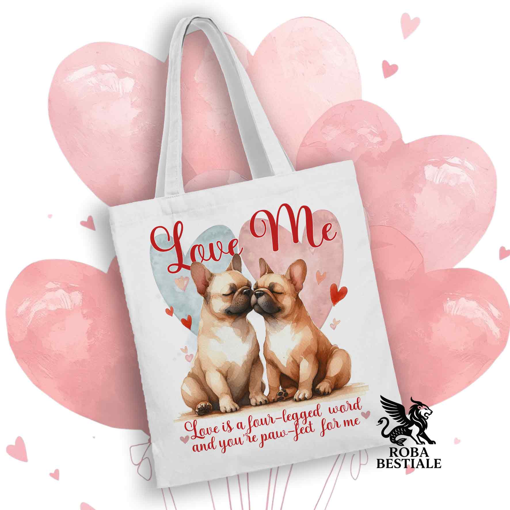 Tote Bag LOVE ME - BOULEDOGUE FRANCAIS Fulvo - 100% Cotone - Bianca o Beige