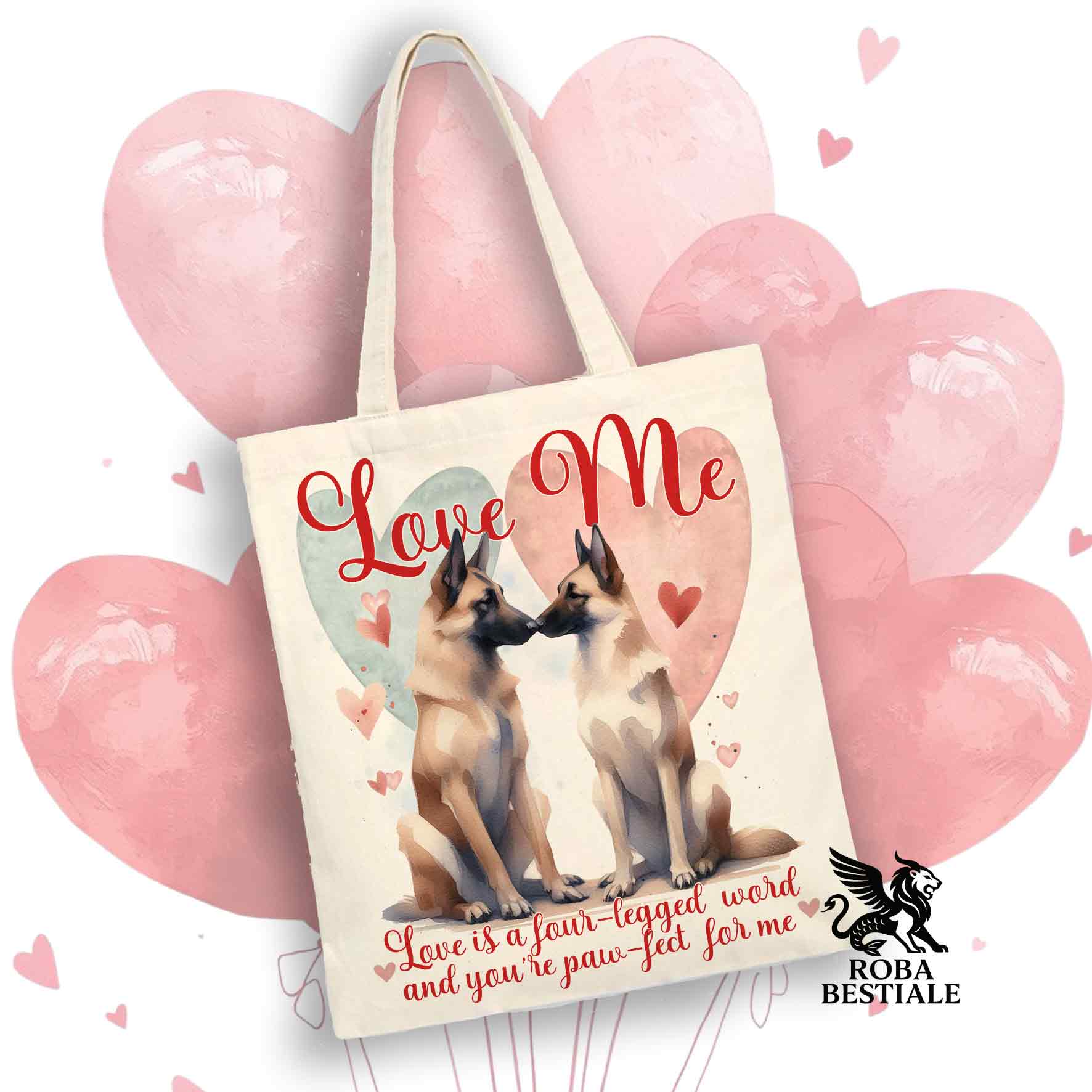 Tote Bag LOVE ME - PASTORE BELGA MALINOIS - 100% Cotone - Bianca o Beige